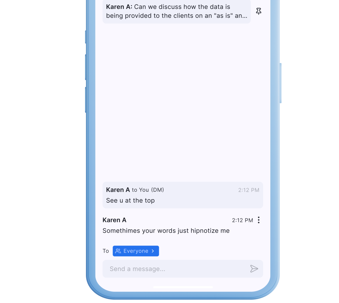 Never lose a great idea in a wall of text. Our intelligent chat interface supports threaded replies and file sharing, ensuring that side discussions stay organized and easily searchable even after the meeting ends.